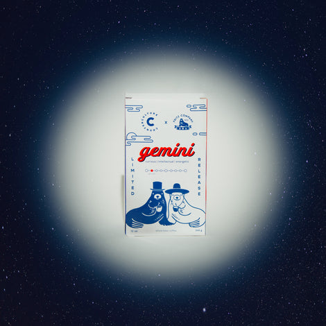 Gemini is a 50/50 blend of a washed Gesha variety from Peru and a natural sundried Villa Sarchi variety from Costa Rica. This coffee pairing bursts with juicy notes of apple and blueberry complemented by soft melon flavors.