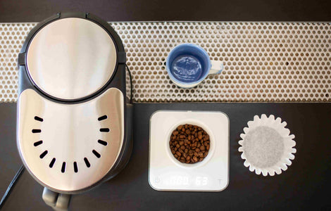 We use a 1:16 coffee-to-water ratio; our recipe makes four cups of coffee.